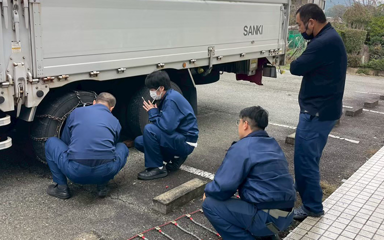 積み荷の養生は、毎運行「完璧」を目指す。
