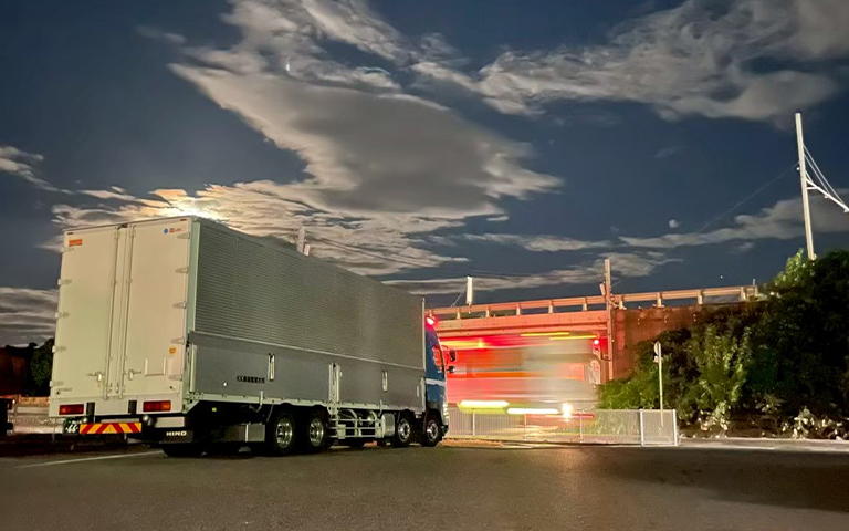 車両を13トン低床4軸ウイング車に絞ることで、製品の種類を問わず幅広い輸送に対応しております。